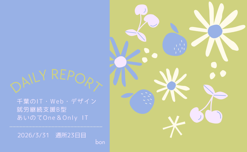 mai/通所147日目/千葉のIT・Web・デザイン就労継続支援B型あいのてOne&Only IT 日報