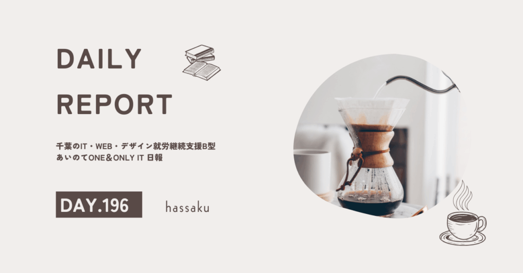 hassaku/通所37日目/千葉のIT・Web・デザイン就労継続支援B型あいのてOne&Only IT 日報