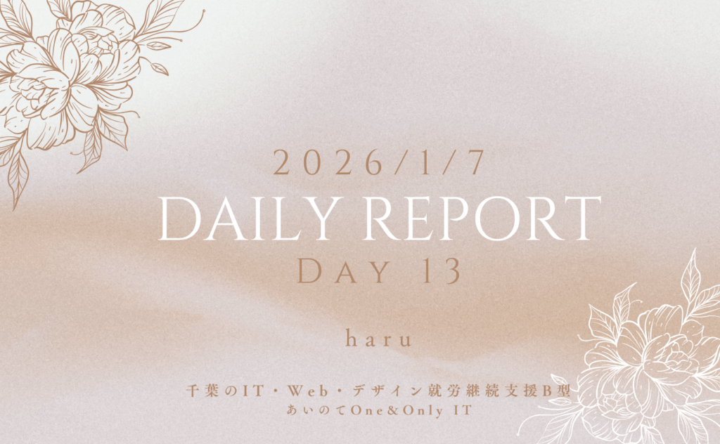 haru/通所13日目/千葉のIT・Web・デザイン就労継続支援B型あいのてOne&Only IT 日報