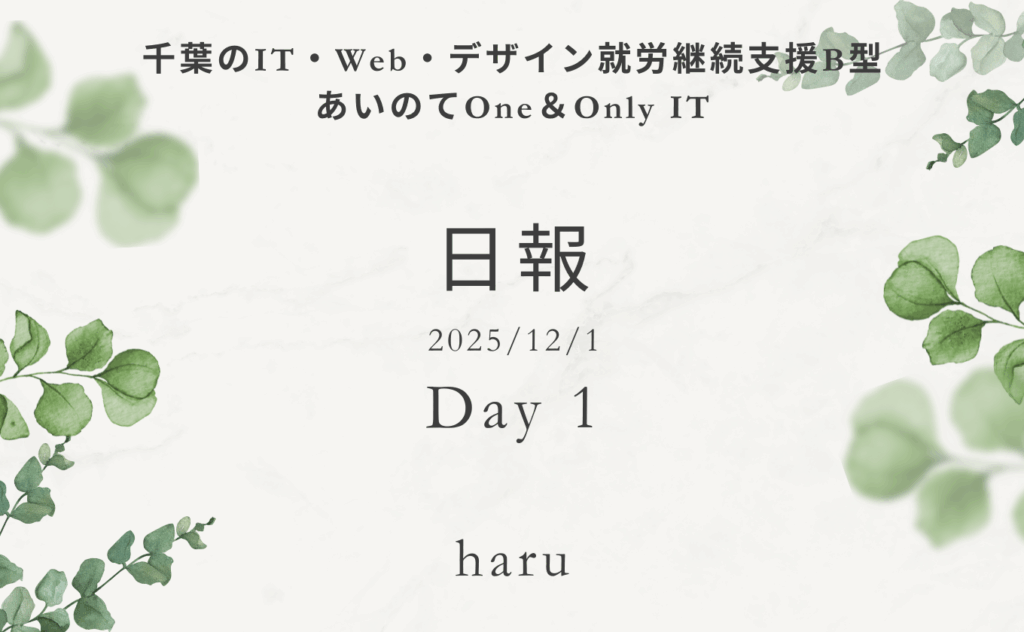 haru/通所1日目/千葉のIT・Web・デザイン就労継続支援B型あいのてOne&Only IT 日報