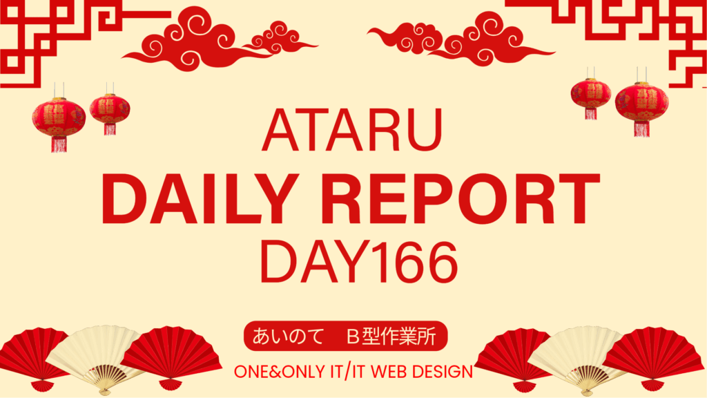 ATARU/通所166日目/千葉のIT・Web・デザイン就労継続支援B型あいのてOne&Only IT 日報