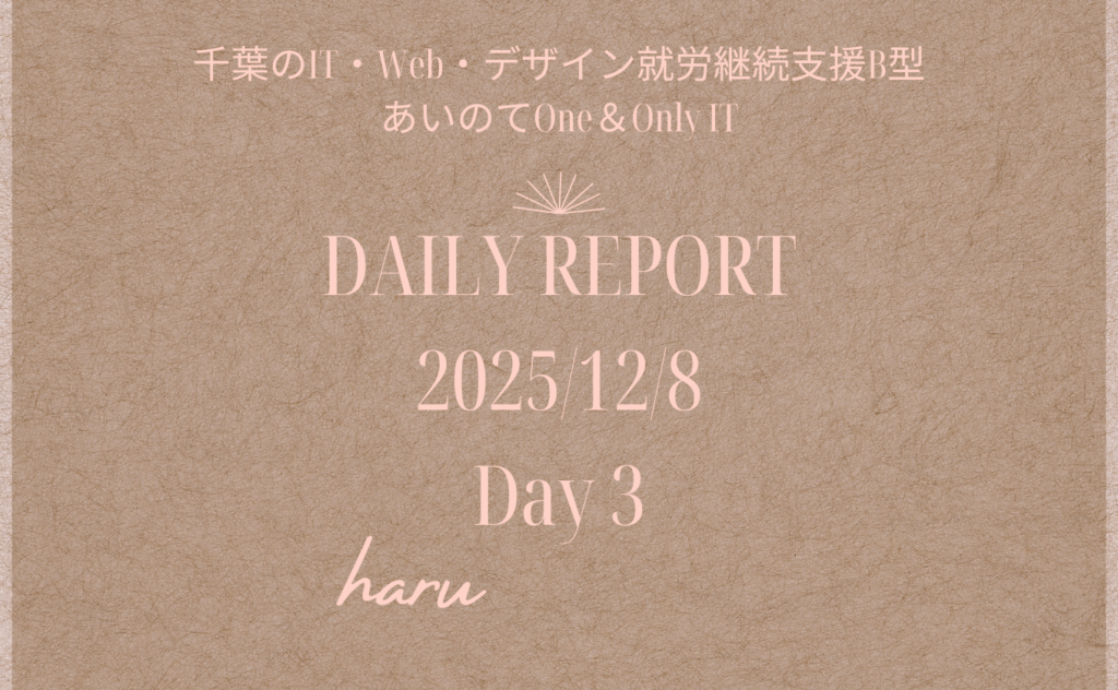 chemi/通所95日目/千葉のIT・Web・デザイン就労継続支援B型あいのてOne&Only IT 日報