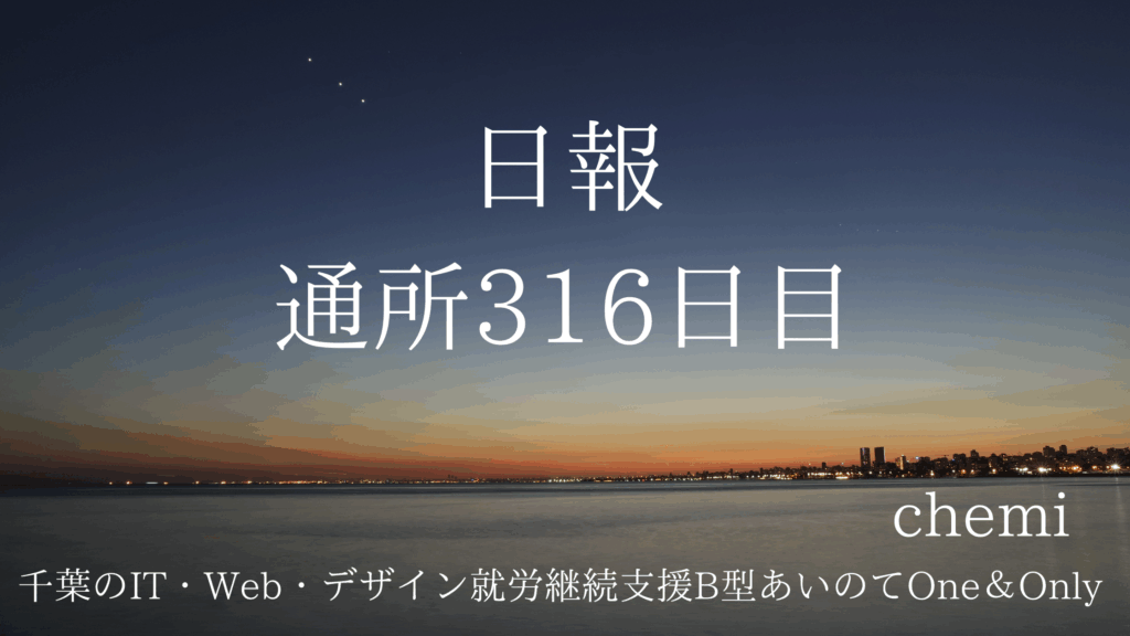 chemi/通所221日目/千葉のIT・Web・デザイン就労継続支援B型あいのてOne&Only IT 日報