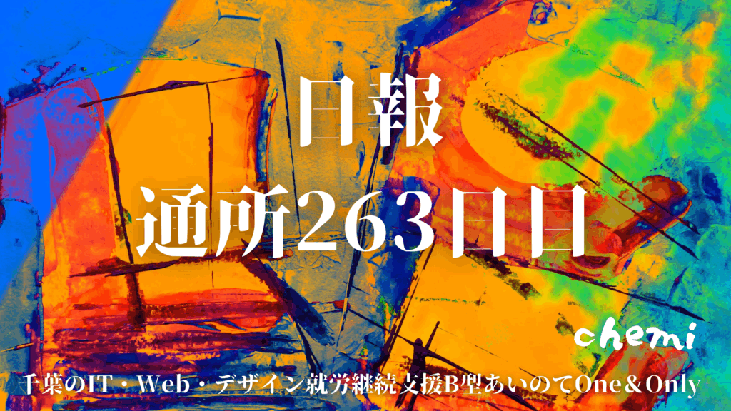 chemi/通所263日目/千葉のIT・Web・デザイン就労継続支援B型あいのてOne&Only IT 日報