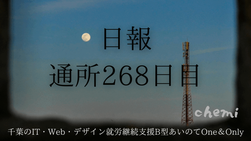 chemi/通所268日目/千葉のIT・Web・デザイン就労継続支援B型あいのてOne&Only IT 日報