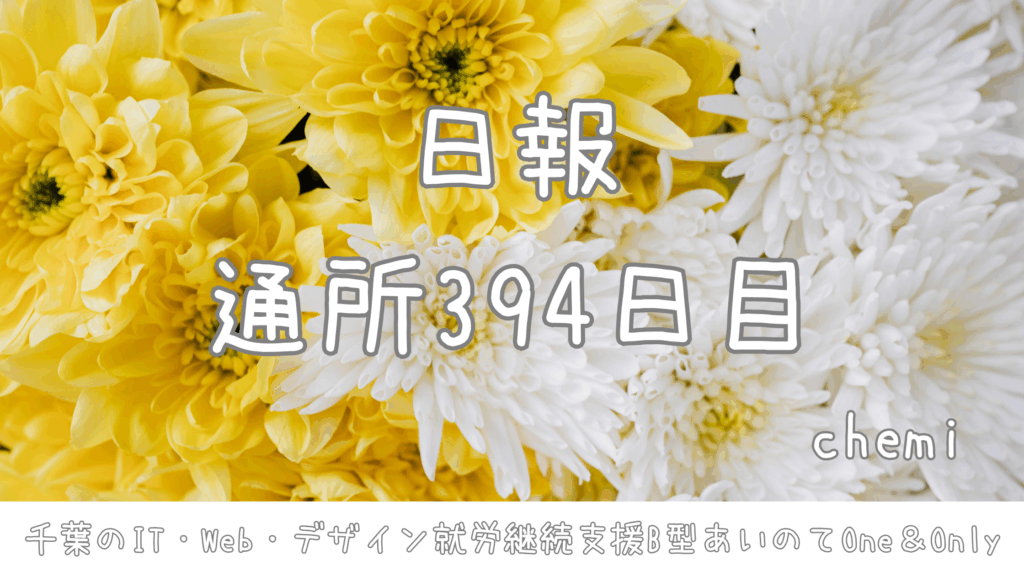 chemi/通所394日目/千葉のIT・Web・デザイン就労継続支援B型あいのてOne&Only IT 日報