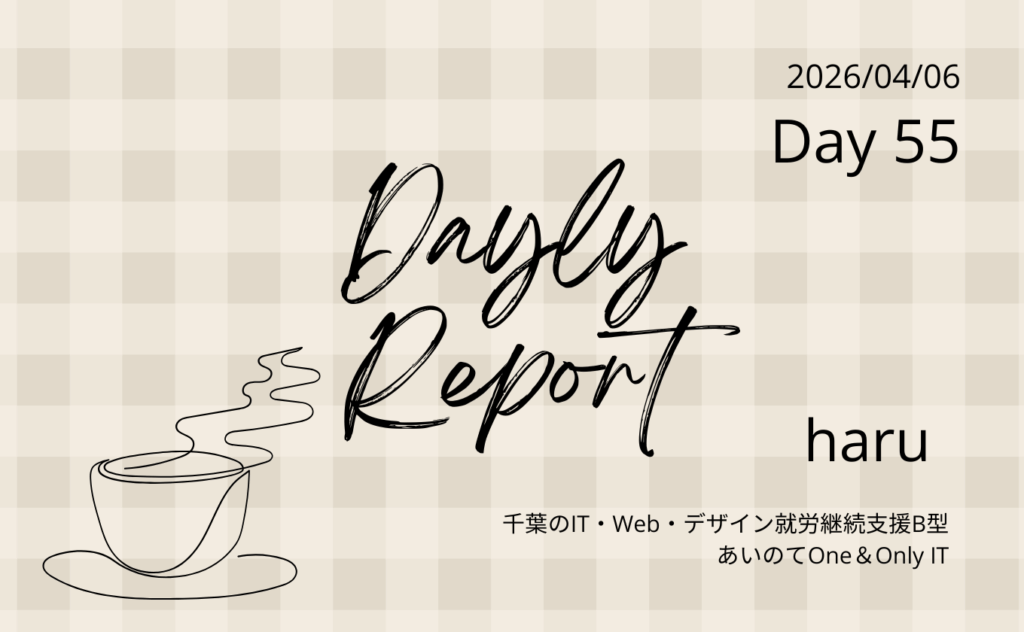 haru/通所55日目/千葉のIT・Web・デザイン就労継続支援B型あいのてOne&Only IT 日報