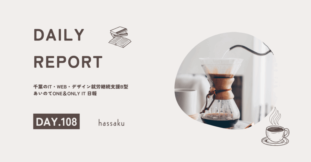 hassaku/通所108日目/千葉のIT・Web・デザイン就労継続支援B型あいのてOne&Only IT 日報