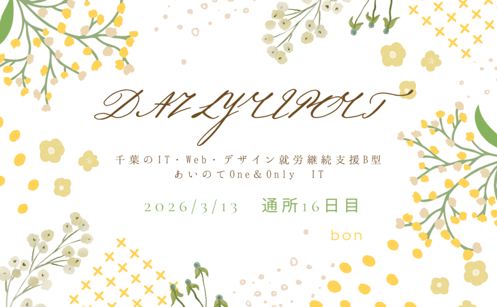 hi-kun/通所20日目/千葉のIT・Web・デザイン就労継続支援B型あいのてOne&Only IT 日報