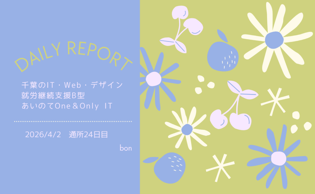 I.S/通所7日目/千葉のIT・Web・デザイン就労継続支援B型あいのてOne&Only IT 日報