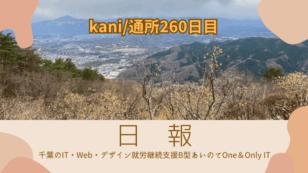 k.taniguchi/通所48日目/千葉のIT・Web・デザイン就労継続支援B型あいのてOne&Only IT 日報