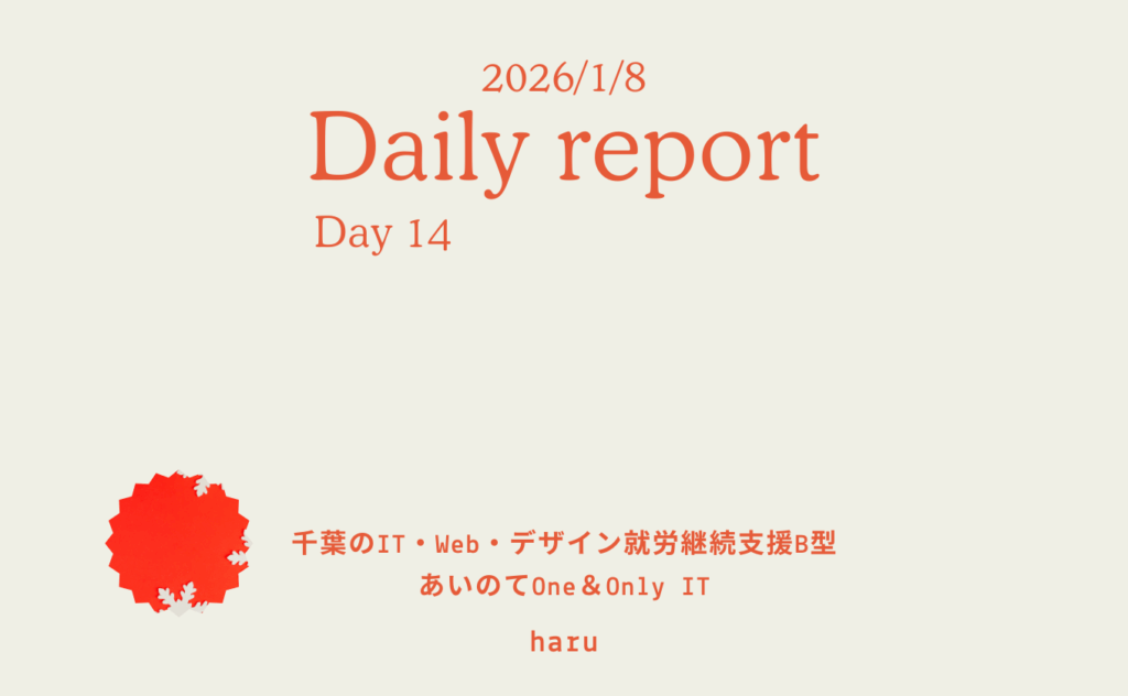 Koh/通所136日目/千葉のIT・Web・デザイン就労継続支援B型あいのてOne&Only IT 日報