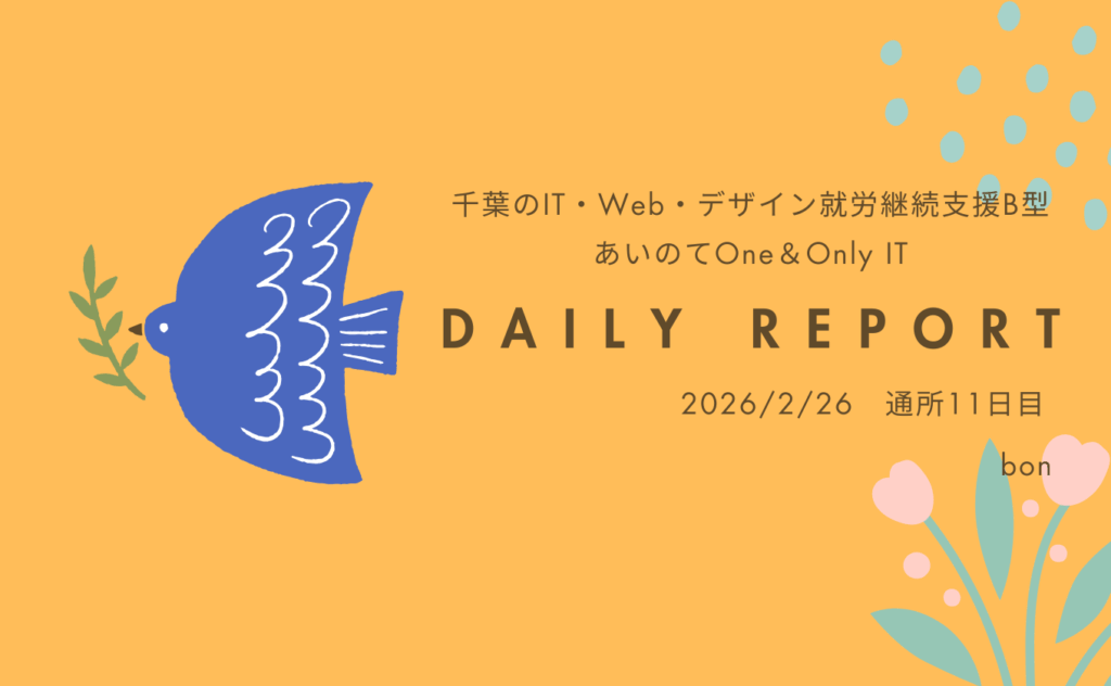 mimi/通所34日目/千葉のIT・Web・デザイン就労継続支援B型あいのてOne&Only IT 日報